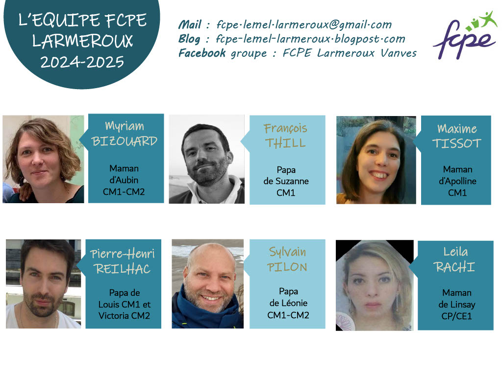 Nous sommes ravis de vous présenter officiellement l'équipe FCPE Larmeroux pour l'année scolaire 2024-2025.